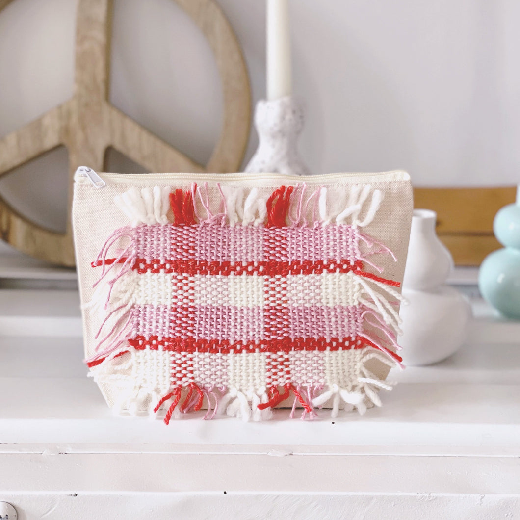 Zipper Pouch x Fiber Art 'PLAID PINK'