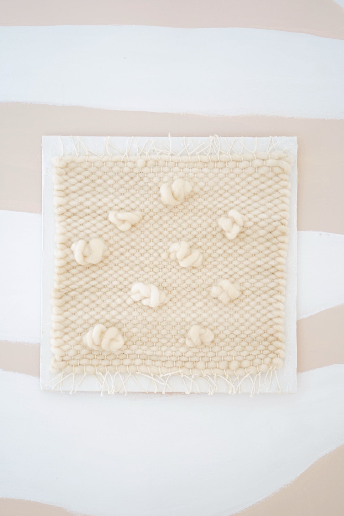 New handwoven, one-of-a-kind fiber art, plastered on board canvas by salt & caramel. The fiber used for weaving is an all-natural, chunky but ultra soft merino wool. Hang on your fav wall or place on a shelf for texture, layers, and personality in your home.